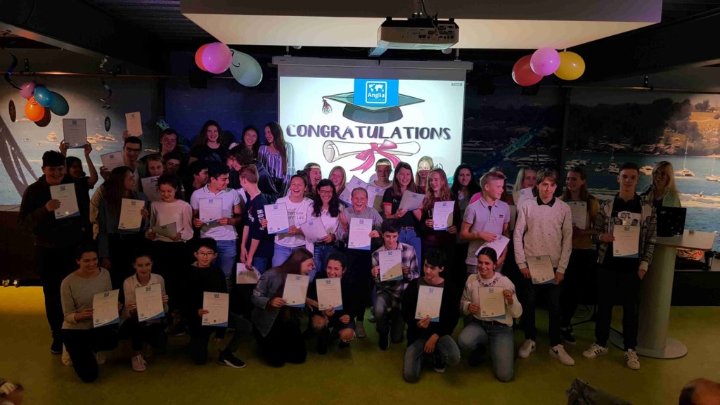 Op dinsdag 24 september jl. vond de Anglia diploma-uitreiking plaats. 49 leerlingen uit de tweede en derde klassen hebben eind vorig schooljaar examen gedaan. Dat is in Engeland nagekeken en alle 49 zijn op 4 verschillende niveaus met prachtige scores geslaagd! Ook dit schooljaar kunnen leerlingen uit jaar 2 en 3 weer meedoen aan dit extra-curriculaire programma van het vak Engels.