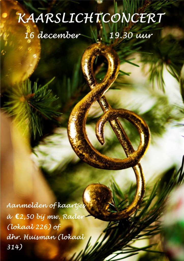 Op maandag 16 december kunnen leerlingen en personeel weer hun muzikale talenten laten horen op het sfeervolle en intieme Kaarslichtconcert.