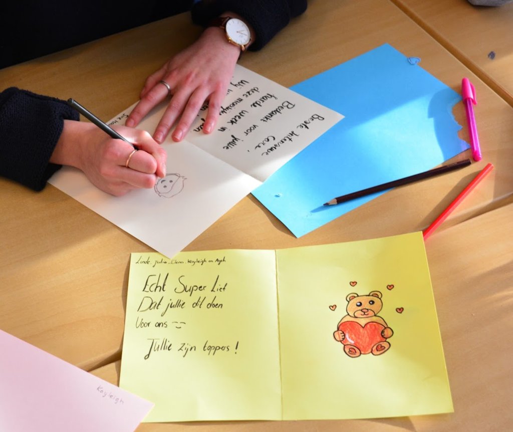 De Maartensdag van dit jaar stond in het teken van 'samen delen'. De leerlingen hebben voor diverse zorg- en hulpverleners kaartjes gemaakt om hen te bedanken voor hun werk. Zeker in het jaar 2020 is (extra) duidelijk geworden dat we heel dankbaar mogen zijn voor al hun werk. Het was leuk om te zien hoe onze leerlingen op een creatieve manier hun dankbaarheid konden tonen.
