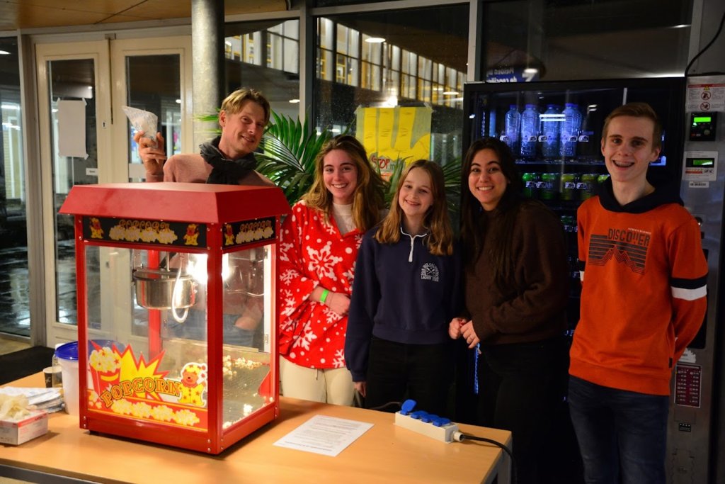 De Maartensactiviteiten van vrijdag 26 november jl. werden afgesloten met een filmavond in de aula. Ongeveer 100 leerlingen keken met zijn allen naar vier films. Tussendoor waren er (grote hoeveelheden) popcorn en pizza beschikbaar. We kijken terug op een geslaagde avond!