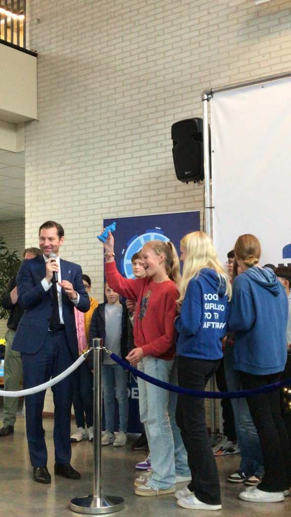 De Christiaan Huygens jeugdprijs bestaat uit een beeldje (geprint met een 3d-printer) en een bedrag van 250 euro. Team 'Flower Power' gaat hun idee dit jaar tijdens de lessen handvaardigheid uitvoeren. Wij danken het Corbulo College voor de goede organisatie van het techniekfestival.